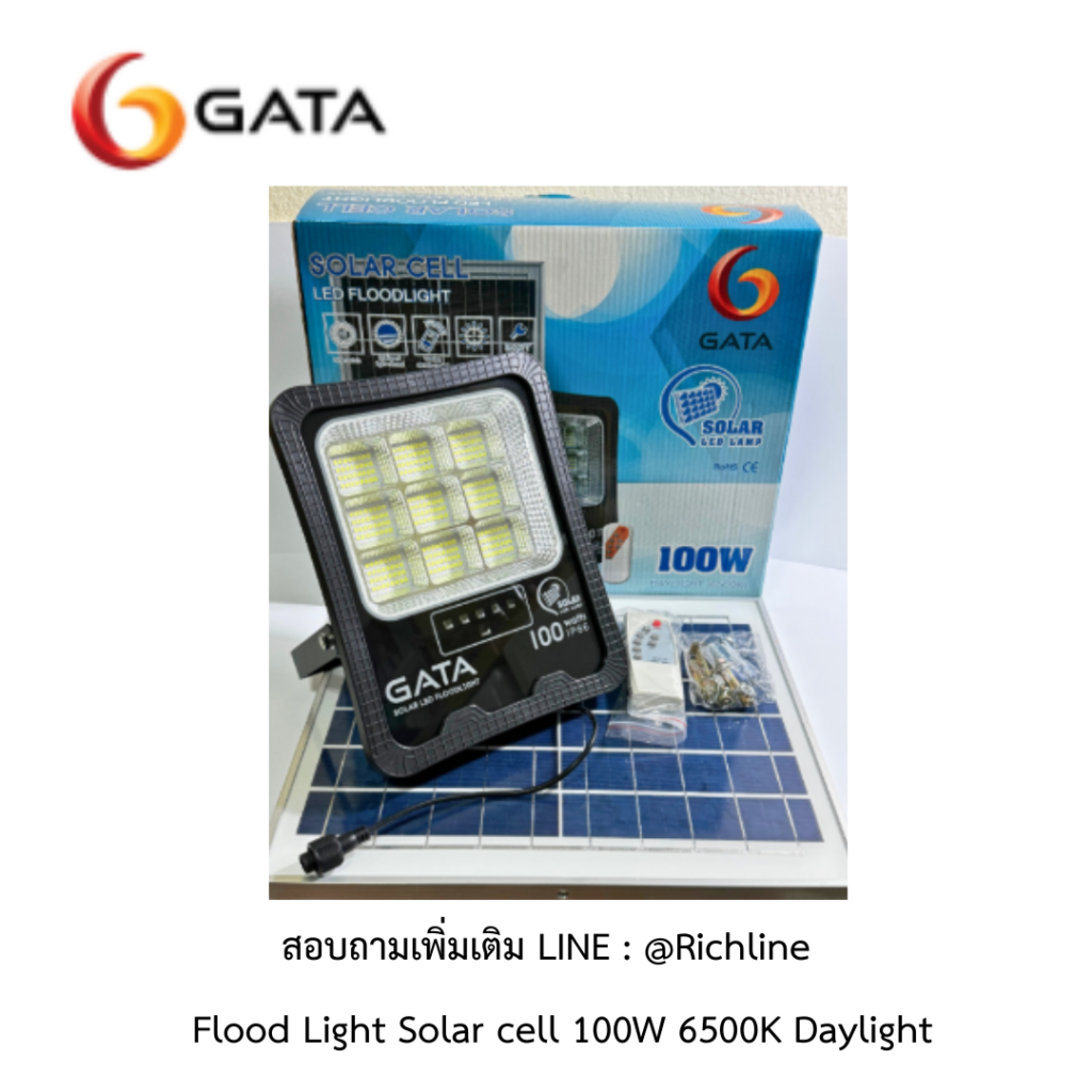 GATA โคมไฟ Flood light Solar cell 100W 6500K Daylight