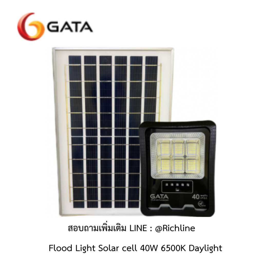 GATA โคมไฟ Flood light Solar cell 40W 6500K Daylight