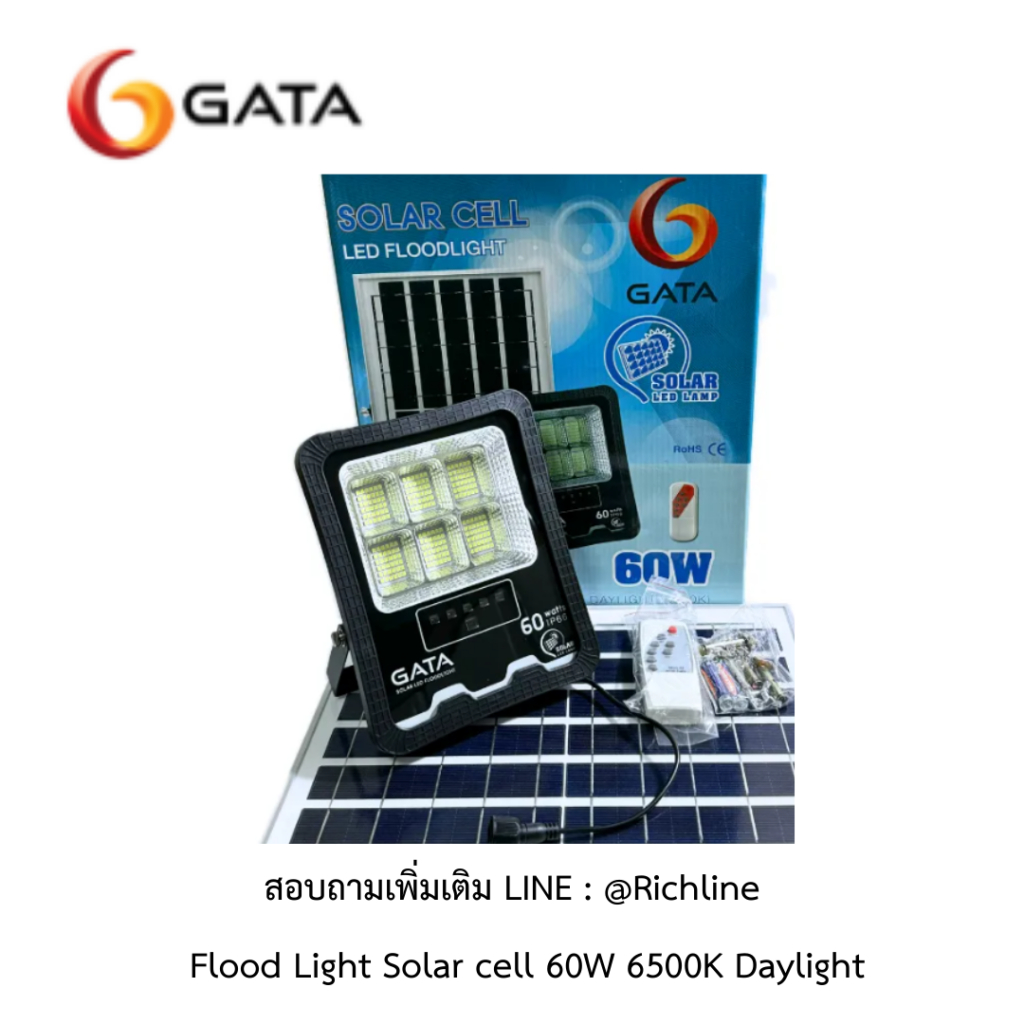 GATA โคมไฟ Flood light Solar cell 60W 6500K Daylight